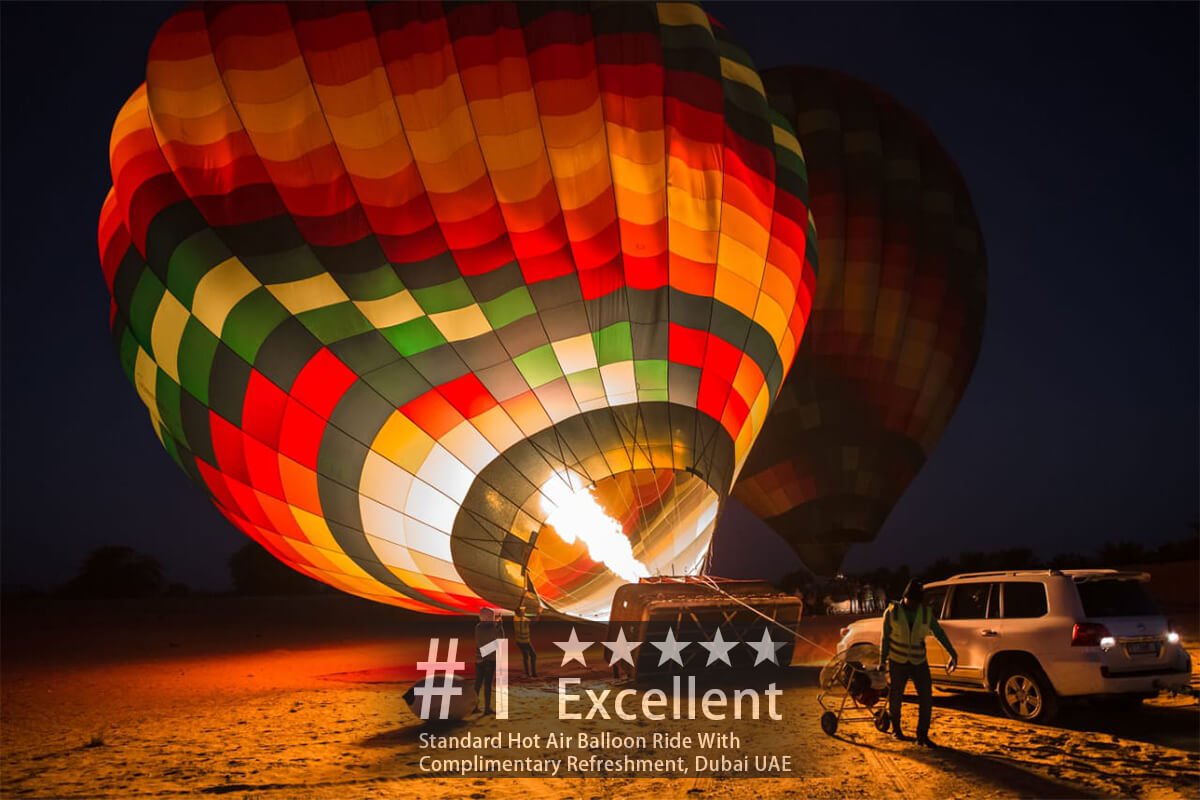 If you are coming by your own transportation, your meeting point will be Dubai Outlet Mall in front of the Main Entrance (Dubai – Al Ain Road). Before the sun rises we will pick you up from your hotel to travel to the take-off point in the desert – not more than a 45-minute drive from the city to start your Ballooning journey. Transfers are done using our cars on sharing basis and private transfers can be done upon requests.