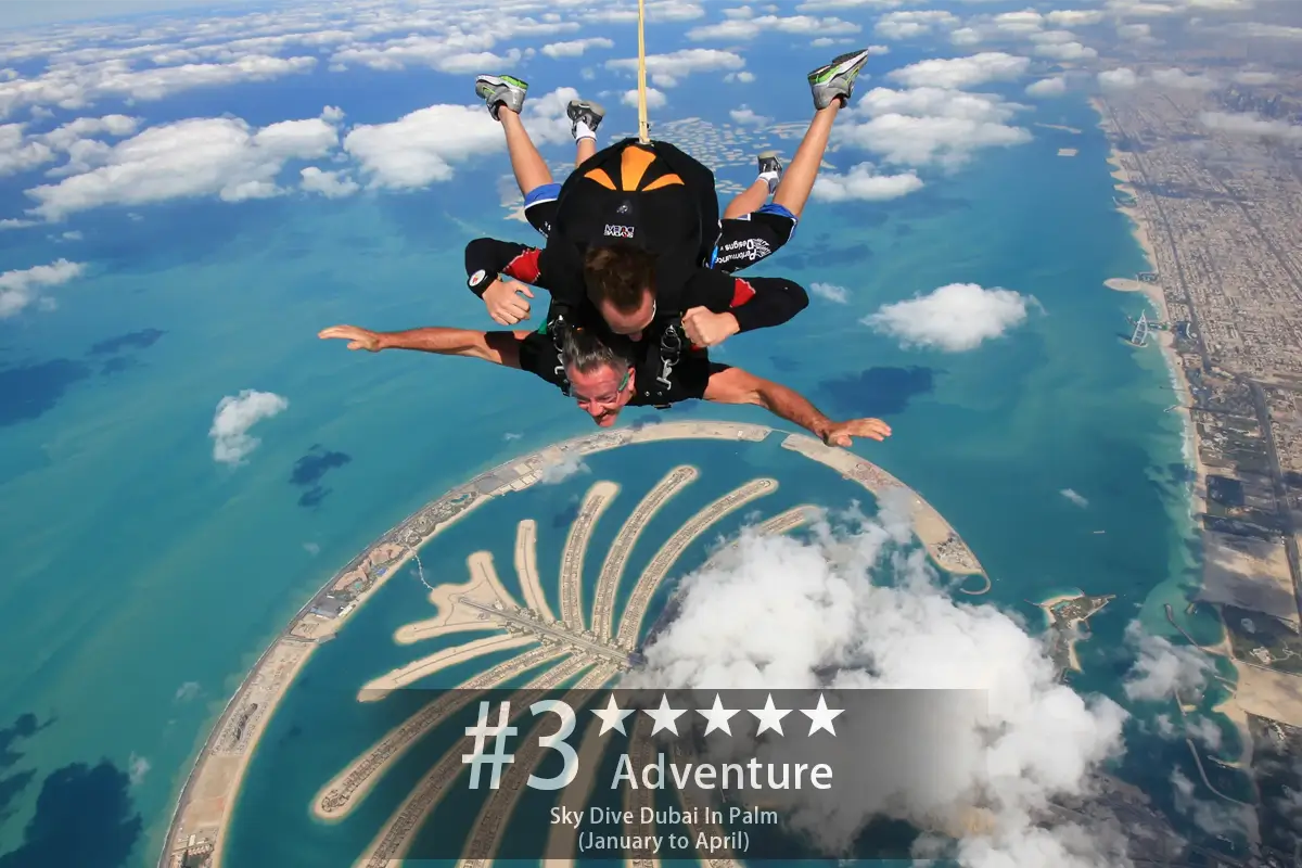Yes, sky diving in Dubai realizes your dream of flying. As the aircraft soars and reaches the perfect altitude of about 13,000 feet, it’s time to exit the plane. Experience the spine-chilling free-fall for full 60 seconds, just before your instructor pull the chord and deploy the parachute.
